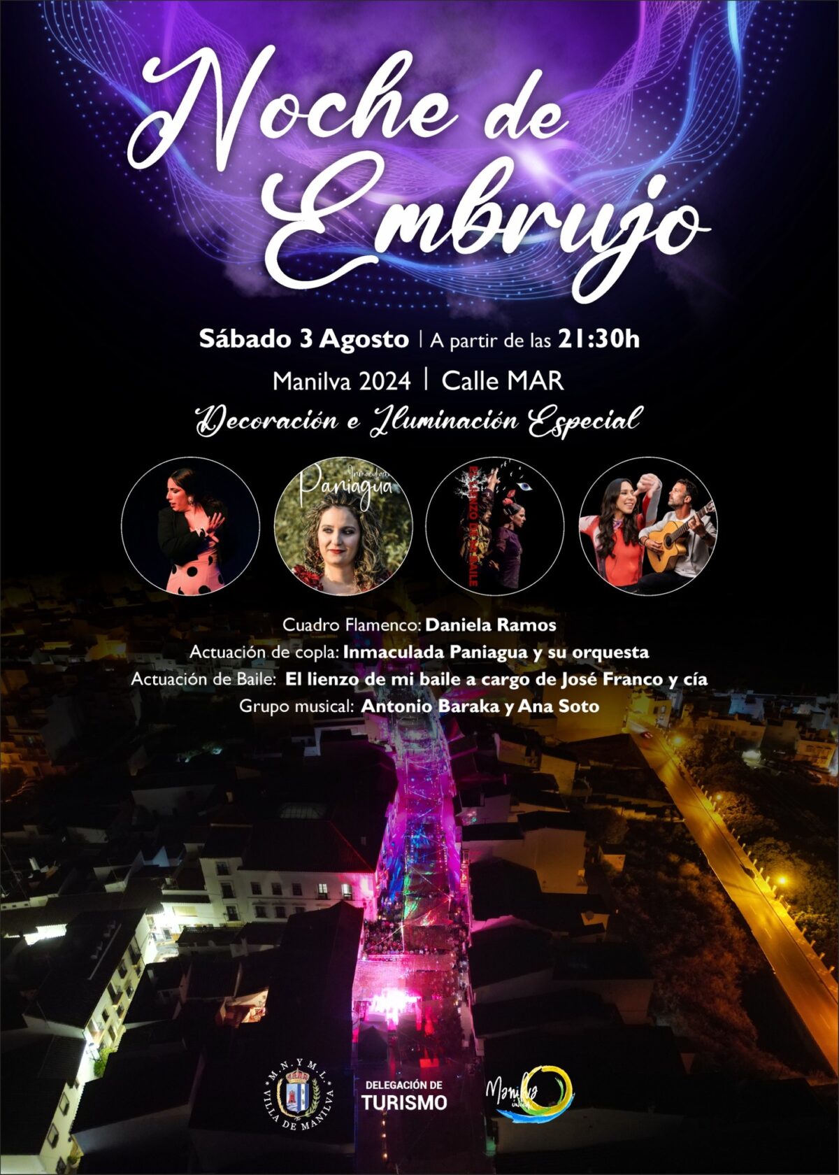 Este fin de semana previo al inicio de la Feria, tampoco se descansa en la localidad. Destacamos la Noche del Embrujo que se realizará en el núcleo de Manilva con la actuación del cuadro flamenco, actuaciones de copla y baile así como de grupos musicales. Tendremos un evento deportivo de Paddlel Surf y dos mercados en el paseo marítimo de Sabinillas.
