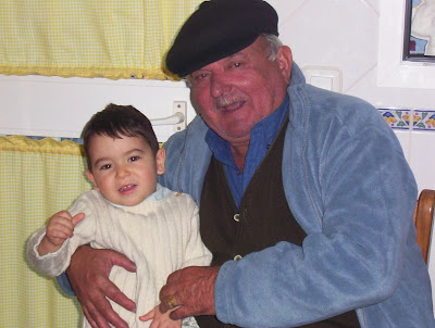 Falleció el 29 de Septiembre del 2005, hace tres años. Está enterrado en Casares. (Como que en Casares). Si, allí están sus cenizas. Un día, subimos él y yo en coche (dice José), fue un año antes morir y al pasar por una curva llegando a Casares, me dijo, José, ahí quiero yo que esparzan mis cenizas cuando muera. Y le pregunté porque, papá? Y me contó una historia que se había guardado durante años: Cuando tenía 13 ó 14 años, iba andando a Casares con su capacho cargado de pescado. De repente, cayó una gran nevada, de medio metro. El quedó exhausto, pero logró llegar a una casa, donde está hoy la venta Victoria, y llamó a la puerta. Iba medio muerto. Casi congelado. Y le abrieron. Era la madre de Paca. Lo reanimaron. Le dieron comida, ropa y chimenea. Y siempre ha considerado que allí volvió a nacer. Por lo que siempre fue guardando en su mente, el deseo de ser enterrado allí. Y allí esparcimos sus cenizas. Vamos nosotros y otra gente que nos pregunta, a dejarle flores en una pequeña casita que hicimos en su recuerdo. Le llevamos flores aunque el ya nos dijo que no las lleváramos, que para que quería flores si allí tenía árboles. Allí está, según su deseo. Frente a la acedía. Por cierto, nos contó de que al día siguiente de la nevada, se levantó y se fue en un burro que esta familia le prestó a vender el pescado a Casares (Increíble. Nuestros antepasados estaban hechos de otra pasta)