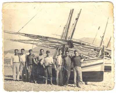 Luego pasó a motorcillo. El primer barco que mi padre compró se llamaba «El Legionario», donde trabajaba mi padre, mi abuelo y mi tio José Morales. Al cabo de los años, un buen amigo suyo, Zacarias, dueño de dos barcos, Anabel y Diego Puerta, le ofreció que fuera patrón de los dos barcos. LLevaban dos o tres pescadores, a Paco y mi tio Morales, compañeros de grandes alegrias y compañeros de golpe de mar. Mi padre no le temia a los temporales. Si le pillaba mal tiempo en la mar les decía «venga, Paco, que esto no es ná» y no regresaba a tierra hasta que no cogía el tope…. si es que era una persona muy optimista y valiente!.