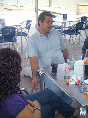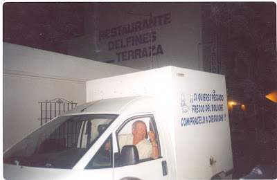 Si, trabajando. Tuvo un accidente que le dejó destrozadas las piernas. Tuvo que volver a aprender a andar como quien dice. Iba en muleta. Como había que seguir comiendo, se fue de cocinero al Bar Playa. Cocinero con muleta. Muchos amigos le recuerdan allí. Por cierto, a los 5 años del accidente le dieron una indenización. Sabes que hizo el día que cobró? (me preparo para escuchar otro detalle de Dieguichi). Llamó a un taxi y le dice a mi madre, Cali, súbete que nos vamos de viaje. Recorrió toda la costa de Málaga y Cádiz y les fue pagando a todos los proveedores de pescado, de puerto en puerto, a los que no pudo pagar tras el accidente. Imagínate las caras que ponían la gente después de cinco años, ver llegar a mi padre y a mi madre con el dinero en la mano a saldar cuentas que ellos ya daban por perdidas. Se quedó tieso, pero le pagó a todo el mundo. Era un hombre increíblemente honrado.